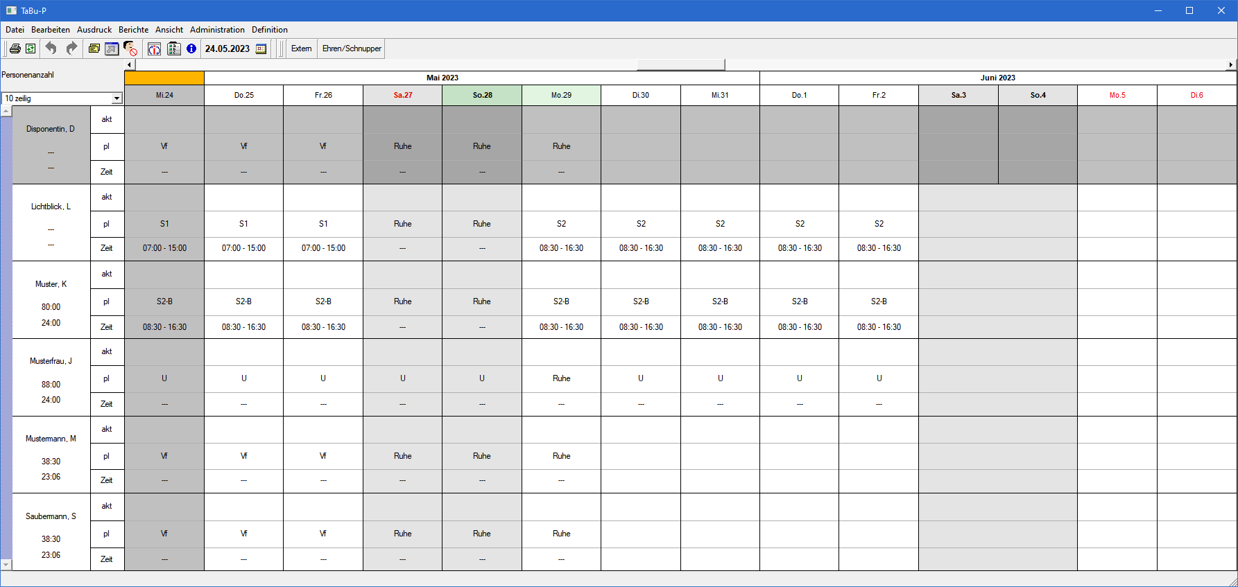 - Anlegen von Wochenschemata (für die Planung wechselnder Einsätze, z. B. Früh- oder Spätdienste)